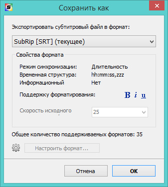 - Возможность использования и сохранения субтитров в более чем 30 специализированных форматах