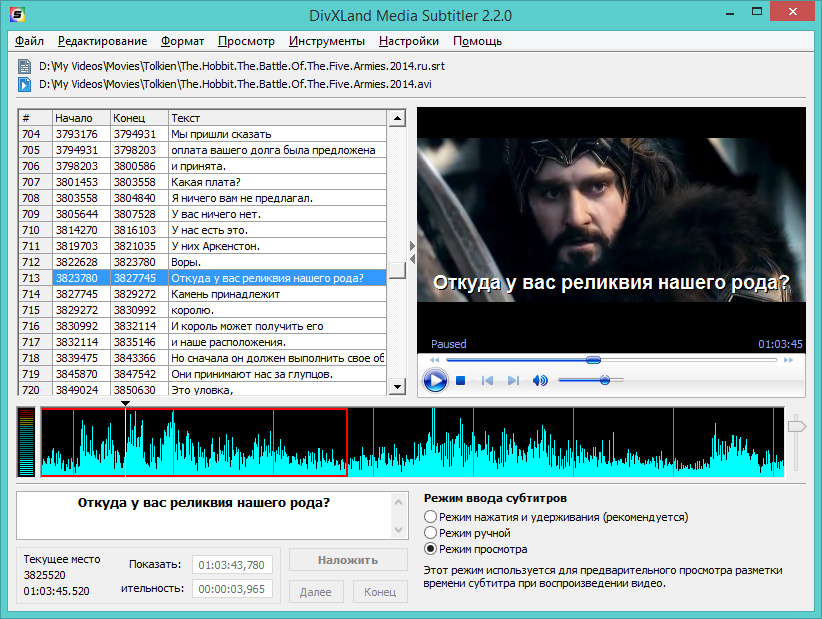 - Возможность задания автоматического тайминга субтитров и его корректировки