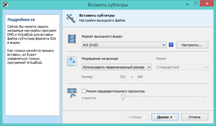 - Возможность вставлять файлы субтитров напрямую в видеофайлы AVI