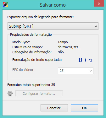 Formatos de legendas suportadas