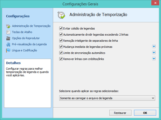 • Atalhos do teclados para controlar facilmente o processo de legendagem