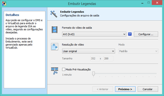 • Habilidade de imbutir arquivo de legenda para o arquivo de vídeo AVI