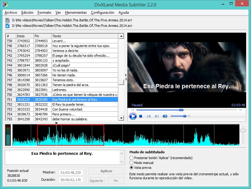 - Guardar subtítulos parcialmente sincronizados para continuar luego