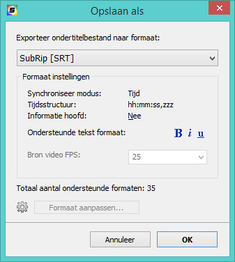 DivXLand Media Subtitler ondersteunt iedere tekstformaat voor ondertitels op voorwaarde dat de instelling voor taal in Windows juist is ingesteld.