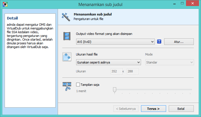 - Bisa digunakan untuk menempelkan file subtitle ke dalam video AVI