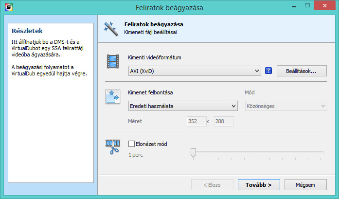 • Lehetõség van a feliratfájlok beépítéséree az AVI videókba