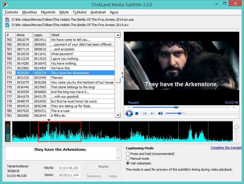 DivXLand Media Subtitler DivXLand Media Subtitler on paras vaihtoehto tekstittää kaikentyyppisiä elokuvia todella nopeasti ja helposti. Monikielinen ilmaisohjelma, tekstitysten luominen ja muokkaaminen ei ole koskaan ollut näin hauskaa ja helppoa.