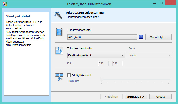 • Kyky upottaa tekstitystiedostoja AVI-videoihin