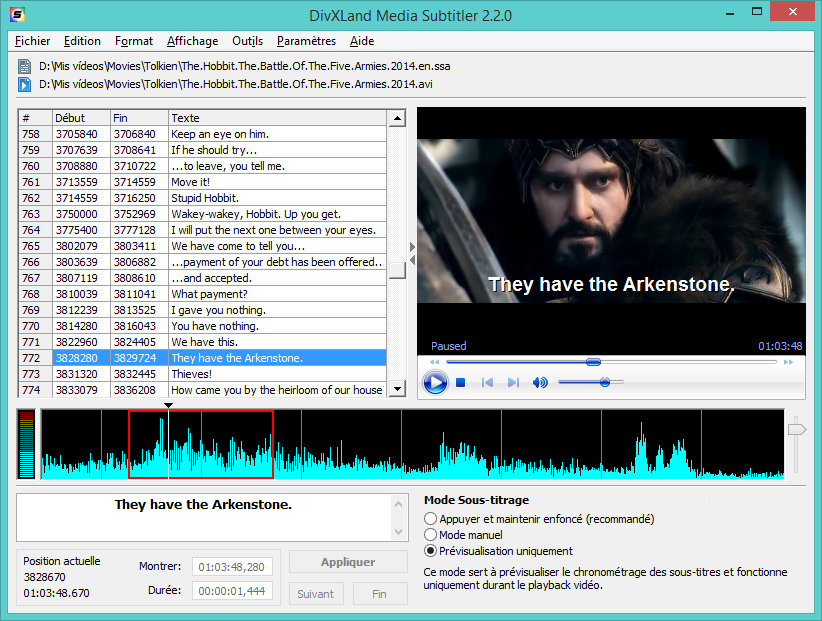 - Des raccourcis clavier simplifient le traitement des sous-titres