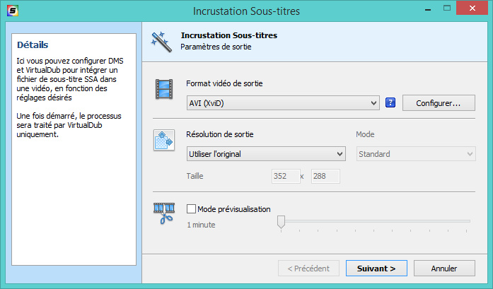 - Possibilité d’incruster les sous-titres dans les vidéos AVI